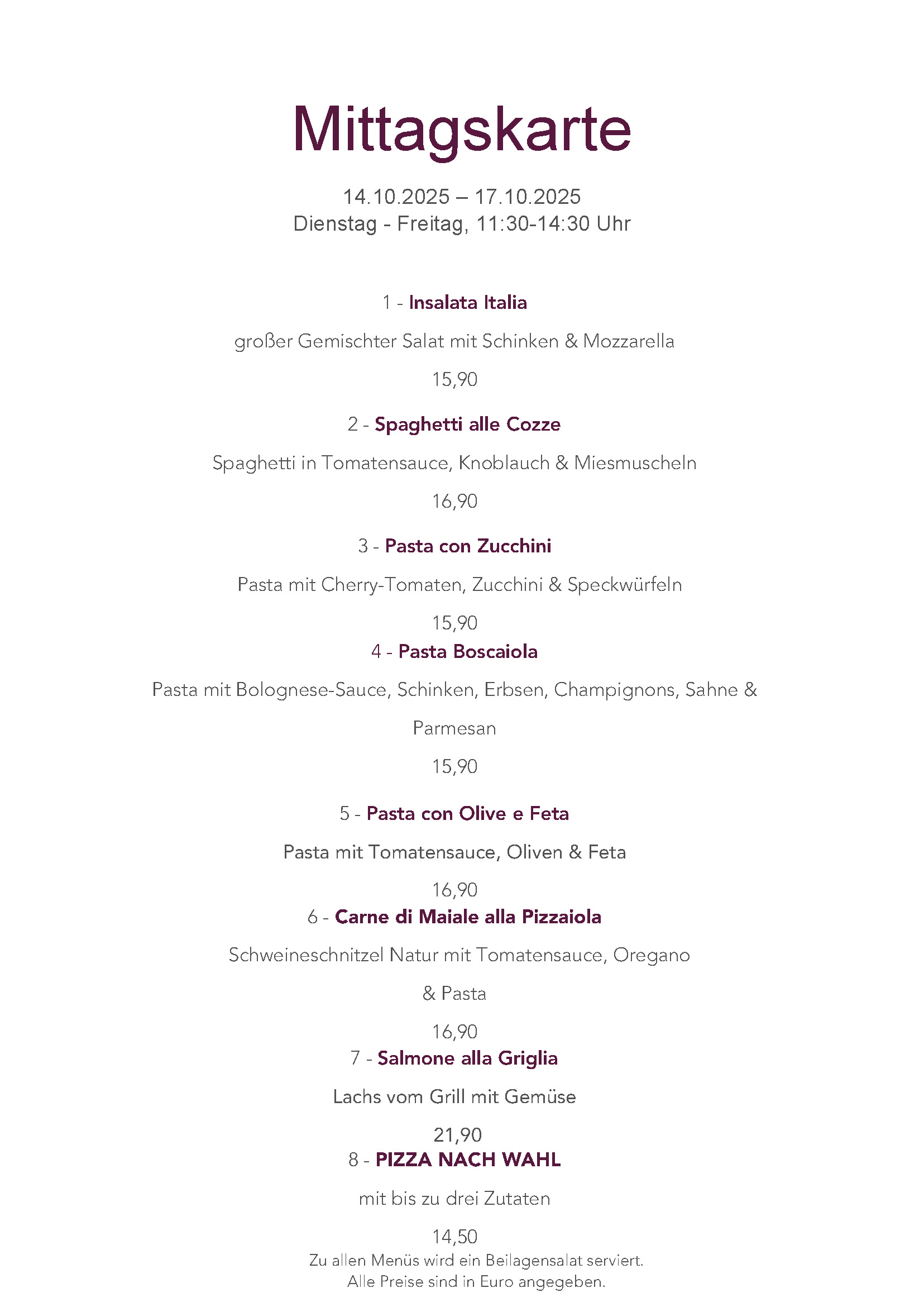 Immer wöchentlich neue Mittagskarten!